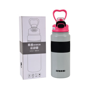 Stay hydrated in style with the Grey & Black Sports Bottle, featuring a vibrant pink lid and a chic heart-shaped handle. Designed for those who balance fitness, work, and travel, this bottle is more than a water carrier — it’s a lifestyle essential. Its sleek matte finish and ergonomic grip ensure durability and a visually striking look. The secure flip-top lid with lock guarantees every sip is spill-free, while the wide-mouth opening makes filling and cleaning effortless.