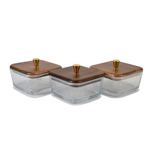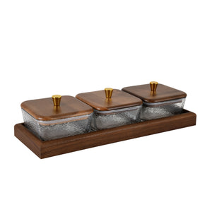 Luxury Wooden Kitchen Storage Jar Set – Glass Canisters with Tray (3 Pieces)