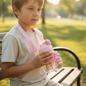 Make hydration extra fun with this adorable Kids Bunny Bottle. Styled in a soft pink theme with a cute 3D bunny figure, this bottle is designed to capture kids’ attention and encourage them to drink more water throughout the day. The bottle comes with a secure flip-top lid and push-button lock for spill-free sipping, plus a wide mouth for easy filling and cleaning. Its adjustable carry strap makes it convenient for kids to take it to school, picnics, or outings.