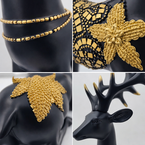 Gold-finished antlers and decorative patterns