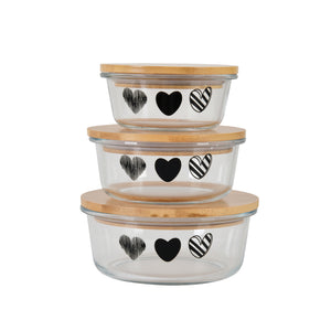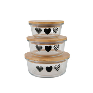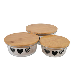 3-Piece Round Borosilicate Glass Container Set with Bamboo Lids