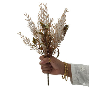 Enhance your floral arrangements and planters with this elegant Artificial Filler Stick, designed to add depth, volume, and a natural touch to any decorative setup. Featuring realistic brown-green leaves paired with soft beige fuzzy sprigs, this filler brings a subtle, organic charm that beautifully complements vases, planters, and artificial bouquets.