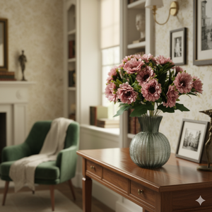 Add elegance and charm to your home décor with this Artificial Pink Gerbera Daisy Flower Bunch. Designed to look lifelike and vibrant, this bunch is made with high-quality silk fabric petals and sturdy plastic stems, giving it a fresh and natural look. The soft pink petals combined with lush green leaves make it a perfect choice for brightening up living rooms, bedrooms, offices, or event décor.