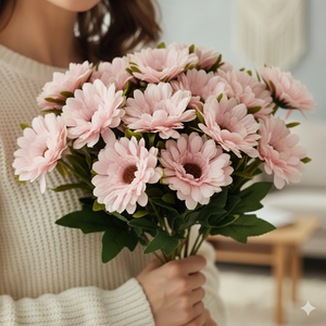 Bring a soft and elegant touch to your décor with the Artificial Light Pink Gerbera Daisy Flower Bunch. Crafted with realistic silk fabric petals and vibrant green foliage, this bunch perfectly mimics the beauty of fresh flowers. With its delicate light pink blooms and natural finish, it makes a charming addition to vases, table décor, or event arrangements.