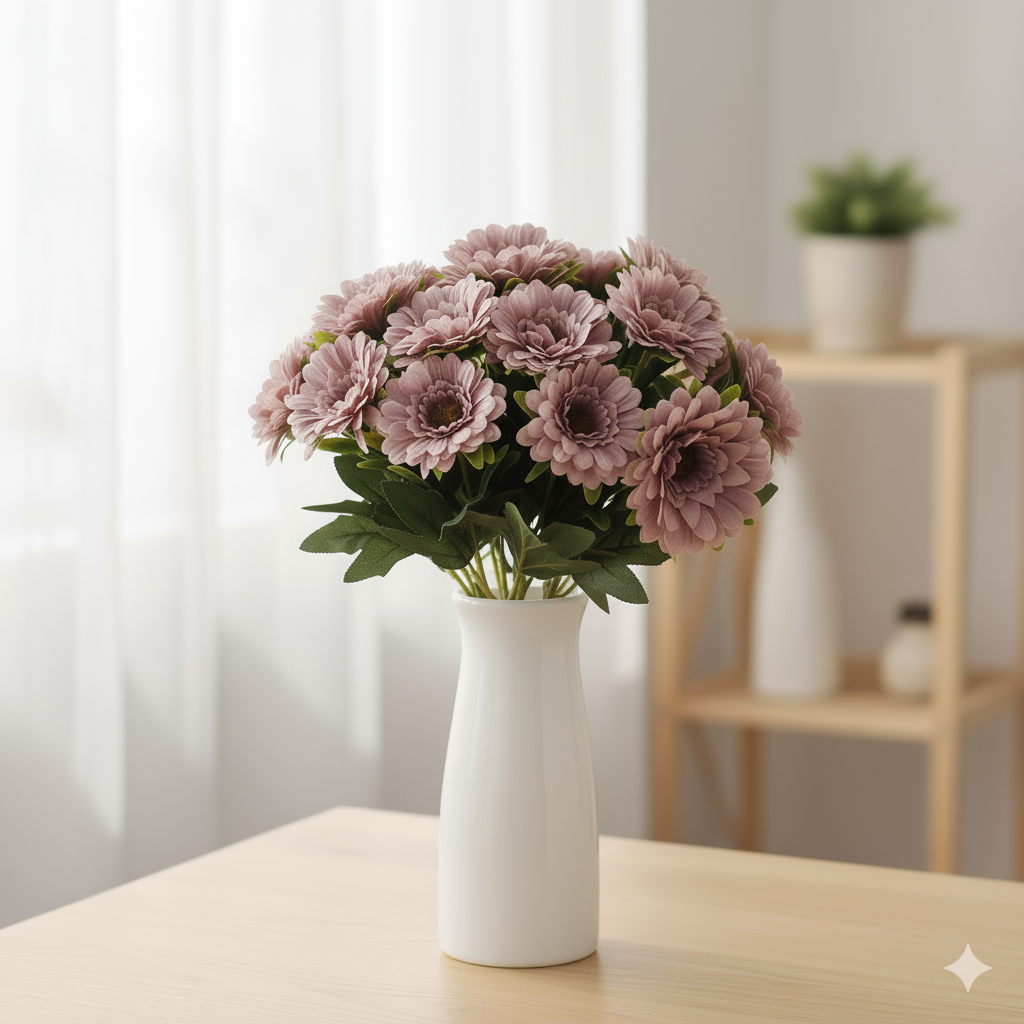 - Design: A ready-to-use bunch with multiple blooming daisy heads, crafted for a natural and full appearance.