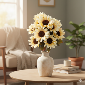 Bring subtle elegance and natural charm into your décor with this Artificial Cream Gerbera Daisy Flower Bunch. Designed with premium silk fabric and sturdy plastic stems, this bunch showcases soft cream petals with a gentle blush tint, complemented by realistic green leaves and deep brown centers. Its delicate yet vibrant look makes it versatile for any interior – from modern minimalistic spaces to festive and wedding décor. Long-lasting and maintenance-free, it adds everlasting beauty to your home, office, or special events.