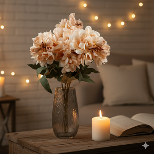 Add a soft touch of elegance to your décor with the Artificial Peach Hydrangea Flower Bunch. Designed with delicate peach-toned hydrangea blooms and paired with lush green foliage, this bunch beautifully mimics natural flowers, giving a fresh and vibrant look all year round. Standing at 41 cm tall, it makes a versatile addition to vases, centerpieces, and decorative arrangements, perfectly enhancing the charm of living rooms, offices, events, or festive décor. With no need for watering or maintenance, it provides everlasting beauty and style.
