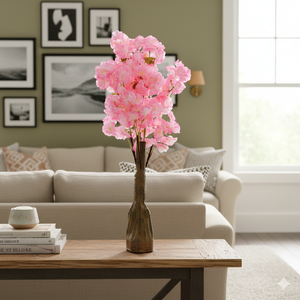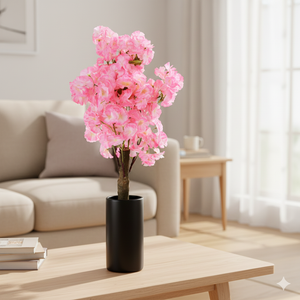 Description: Bring timeless spring charm indoors with this elegant artificial flowering plant, designed with clusters of soft pink blossoms on multiple stems rising from a sturdy, bark-textured trunk. Each bloom is delicately layered and shaded for a lifelike appearance, creating a graceful, natural silhouette that stays fresh and vibrant all year long. Perfect for living rooms, bedrooms, entryways, and event décor, it adds color, warmth, and sophistication to any space—without the need for maintenance.