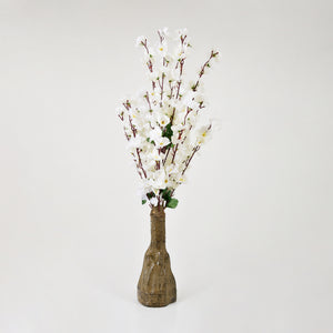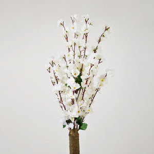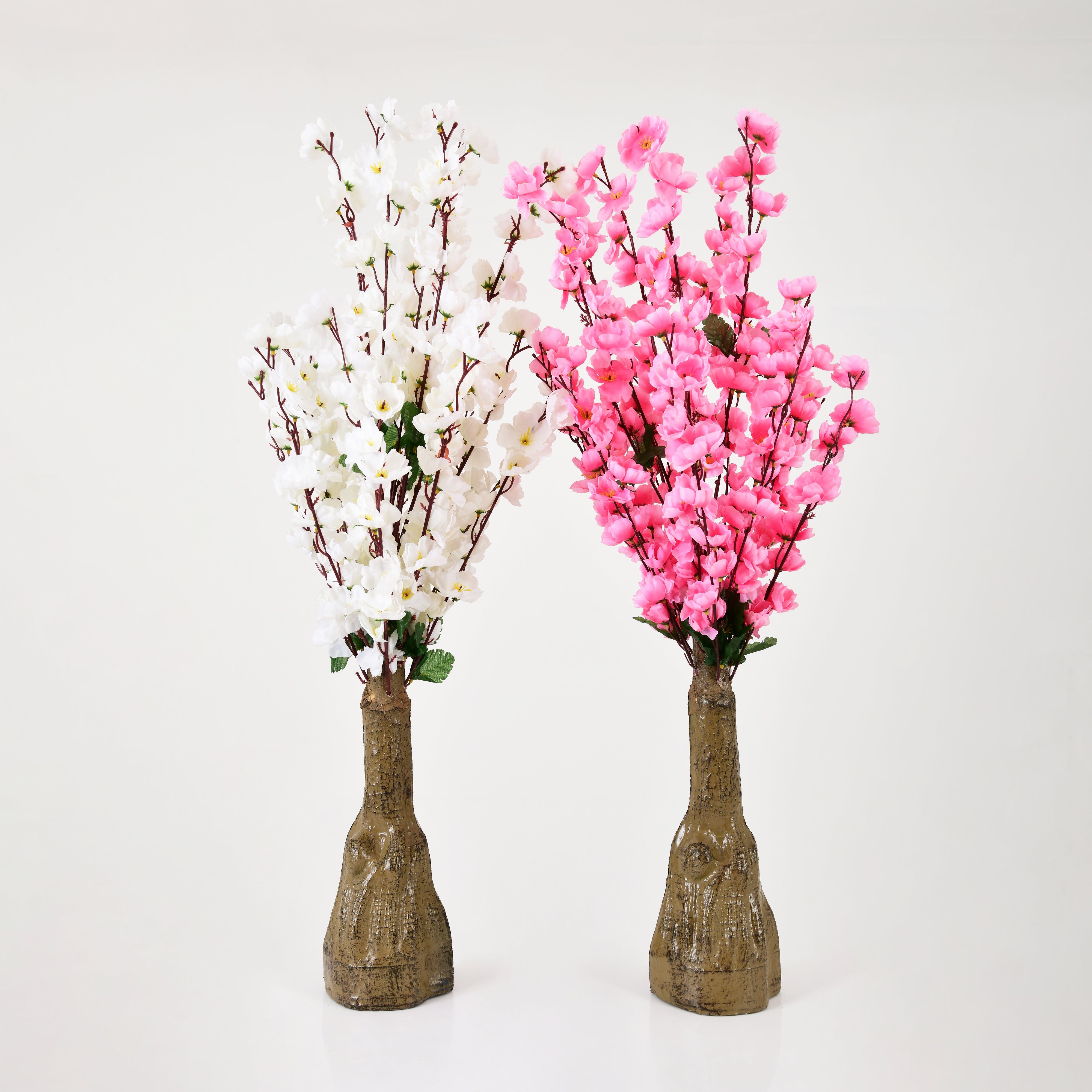 Crafted with a realistic brown trunk sculpted to mimic natural bark, this plant features multiple slender branches that hold clusters of layered white blossoms. Each petal is softly curved with gentle transparency and subtle yellow centers, creating depth and realism. Interspersed green leaves add natural contrast, enhancing the lush, organic look. The arrangement forms a full, vertical bouquet with evenly spread blossoms for balance and volume. Unlike real flowers, these blossoms stay pristine and vibrant throughout the year, offering lasting elegance that complements both modern and classic interiors.