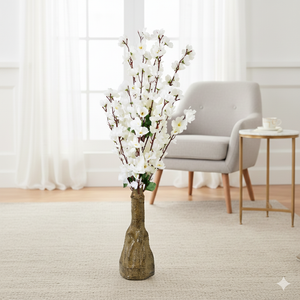 This artificial plant serves as a versatile décor accent, bringing brightness and calmness to any environment. Ideal for living rooms, bedrooms, and dining spaces, it also enhances offices, receptions, and meeting rooms with a touch of natural freshness. Perfect for weddings, anniversaries, housewarmings, and festive décor, it delivers beauty without the mess of real flowers. Its timeless white blossoms make it ideal for photo setups, stage décor, and elegant gifting.