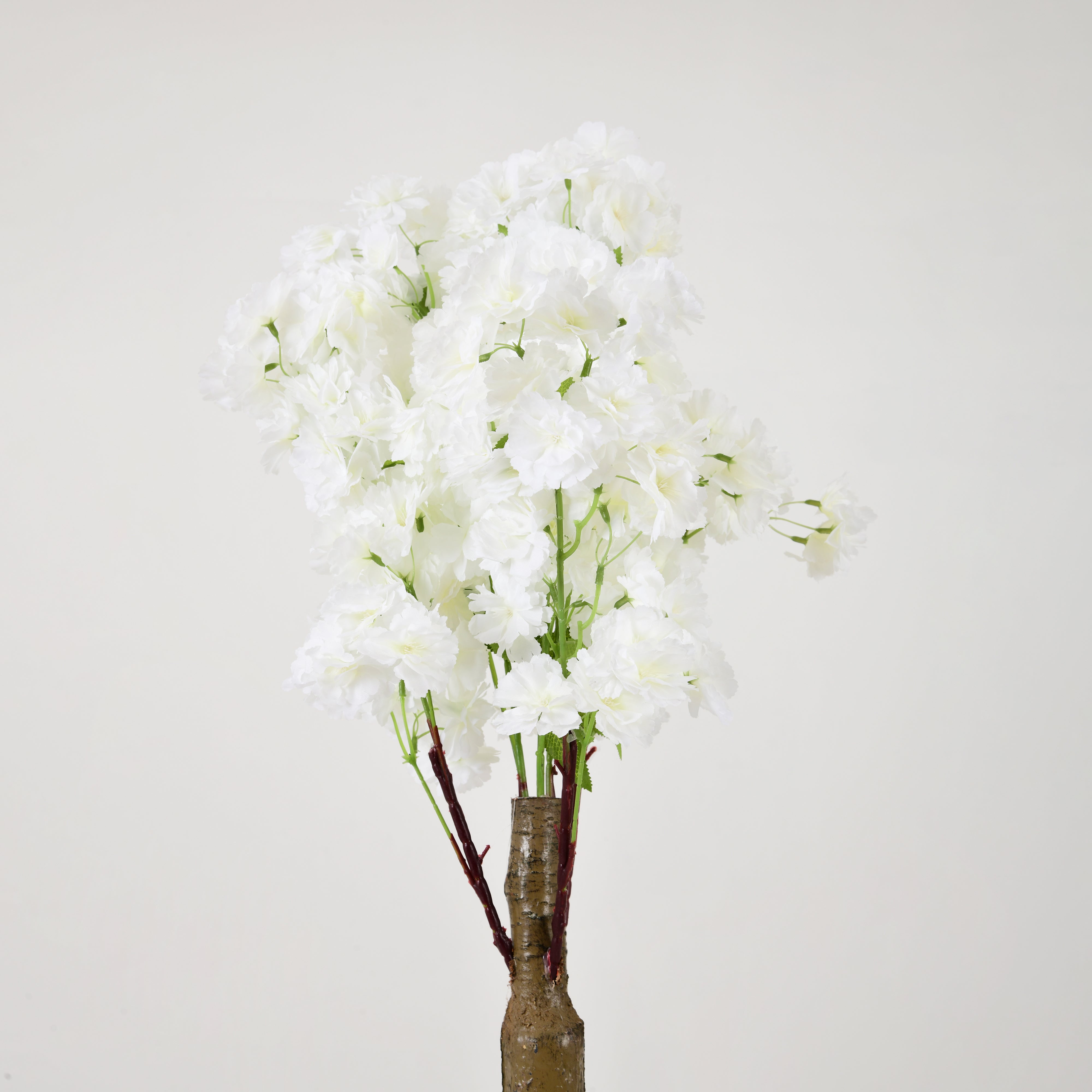This premium artificial flowering plant features lush clusters of elegant white blossoms arranged on multiple branches emerging from a sturdy, bark-textured trunk. The dense bloom arrangement creates a soft, cloud-like silhouette that brightens interiors and adds a calming, natural vibe. Crafted with lifelike detailing, it replicates the beauty of real flowers while offering the convenience of zero maintenance. Perfect for living rooms, bedrooms, entrances, offices, and event décor, it brings sophistication, purity, and timeless beauty to any space.