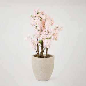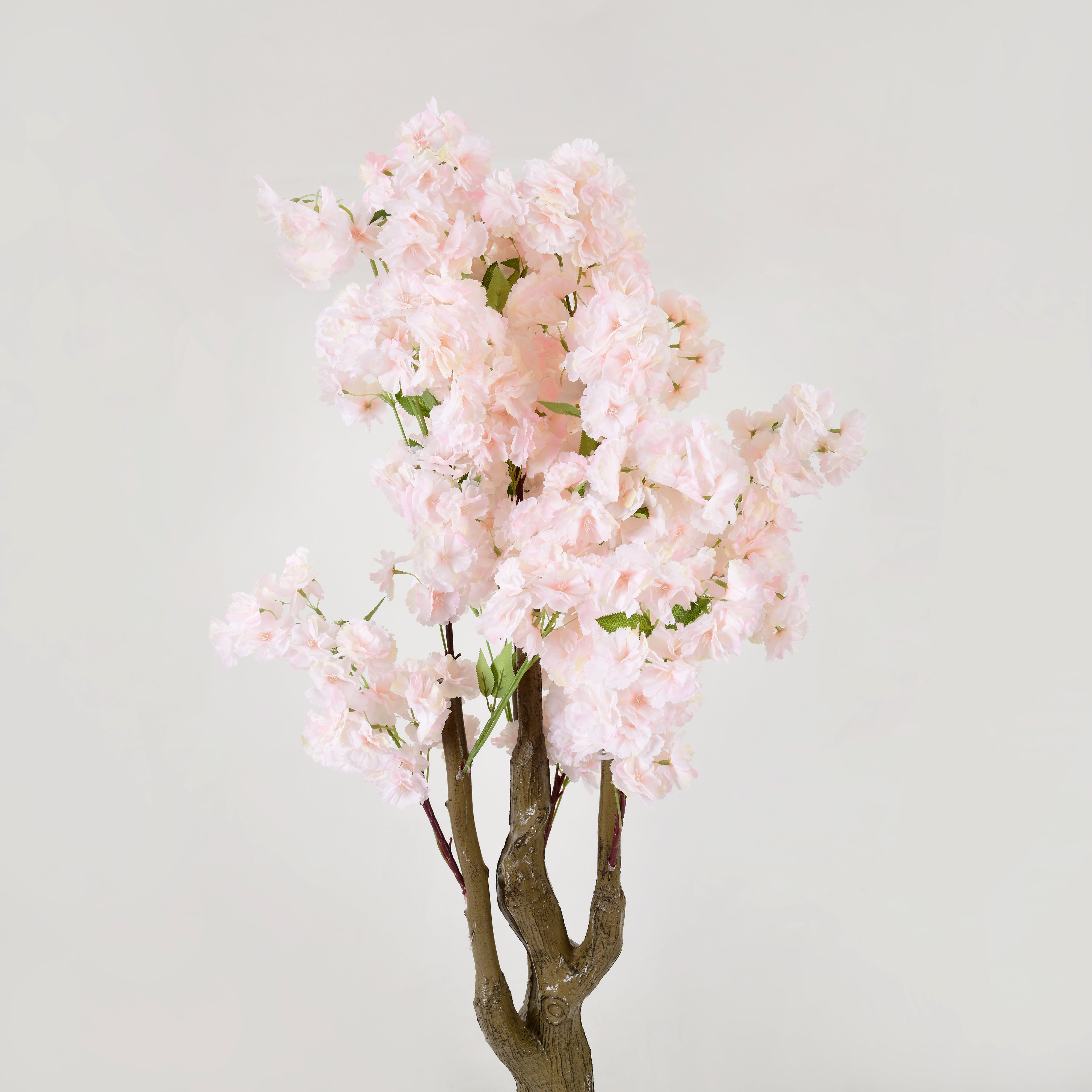 This premium artificial flowering plant features abundant clusters of delicate light pink blossoms gracefully arranged across multiple sturdy branches that emerge from a textured, natural-looking trunk. Its full, layered arrangement creates a lush and elegant silhouette, brightening interiors with a soft, romantic charm. Designed with exceptional attention to detail, the blossoms capture the freshness of real spring flowers while offering the convenience of zero maintenance. Perfect for living rooms, bedrooms, entrances, offices, and event décor, it adds sophistication, vibrancy, and timeless floral beauty to any setting.