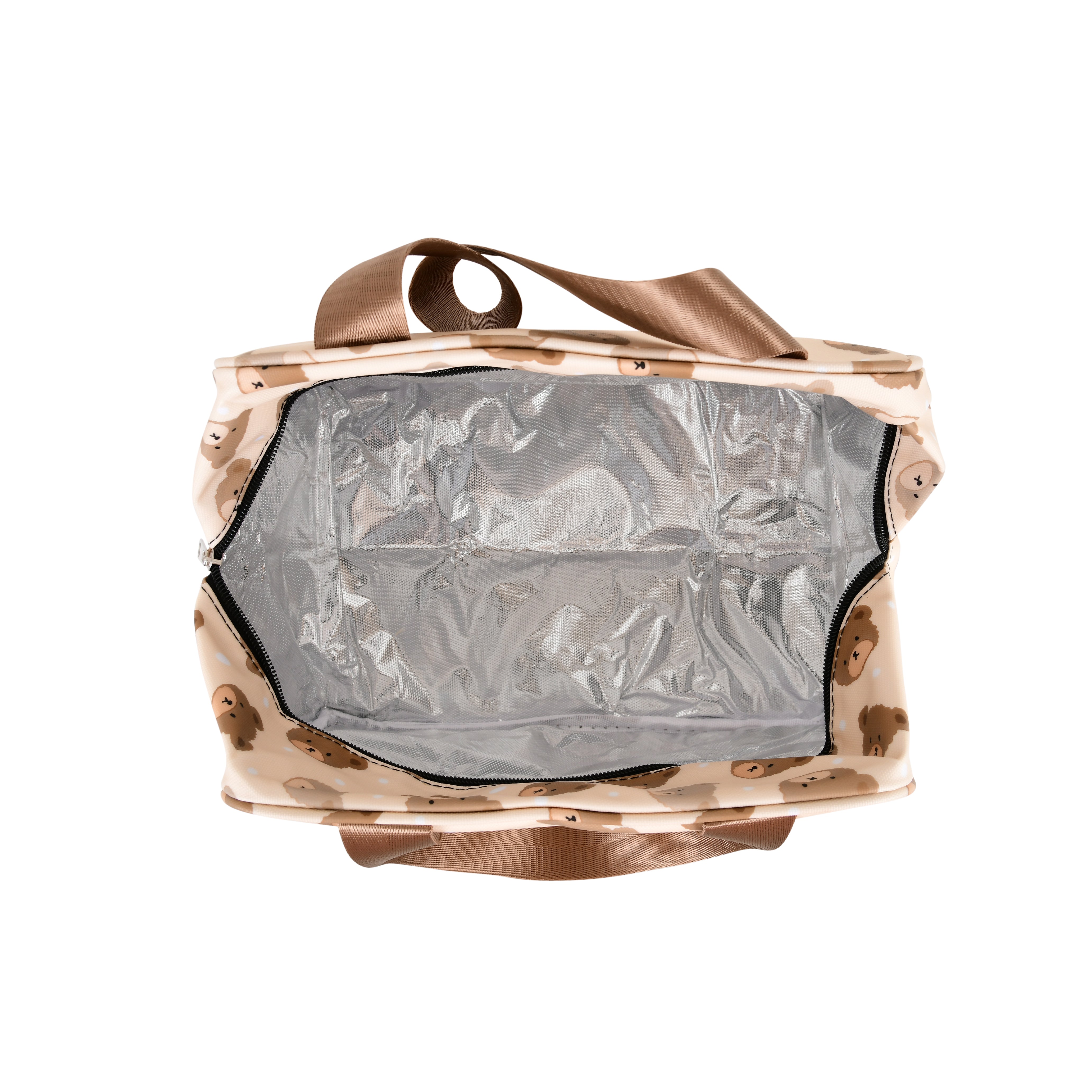 Beige base with multicolor teddy face print-insulated Lunch BAG
