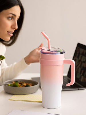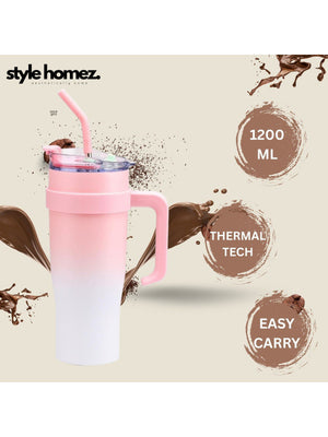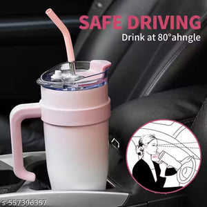 With a generous 1200ml capacity, this tumbler supports all-day hydration with fewer refills. The 2-in-1 lid allows you to sip directly or use the straw, offering flexibility and convenience. Its sturdy ergonomic handle and cup-holder-friendly base make it ideal for on-the-go use.