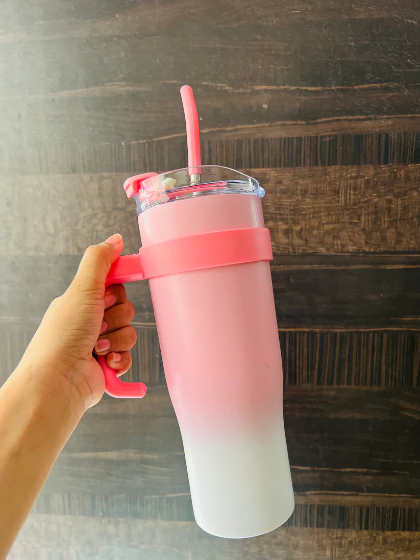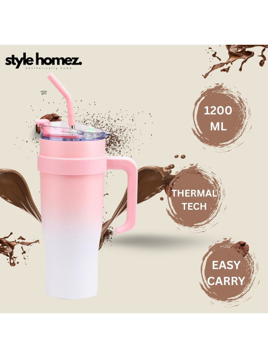 Bella N Bloom 1200ml Stainless Steel Insulated Tumbler with Handle & Straw Lid (Pink)