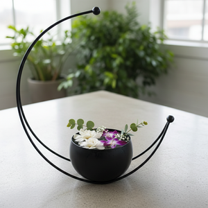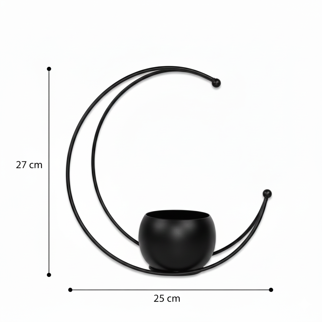 The modern crescent-inspired design symbolizes balance and harmony. The smooth spherical pot sits securely within the curved metal frame, creating a floating visual effect. The brass-coated finish gives it a premium look, while the clean lines and soft curves make it an eye-catching décor statement. Lightweight yet sturdy, it is easy to place and style in multiple settings.