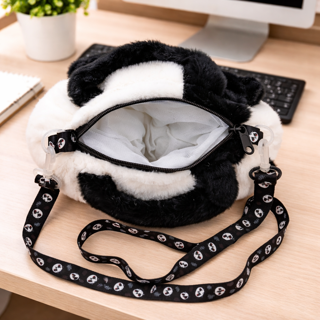 Add a dose of cuteness to your everyday look with this Adorable Panda Plush Mini Sling Bag, designed for comfort, charm, and playful style. Crafted from ultra-soft faux fur material, this bag features a cute panda face design with black and white detailing that instantly stands out. Its fluffy texture and compact structure make it perfect for kids, teens, and anyone who loves kawaii accessories.