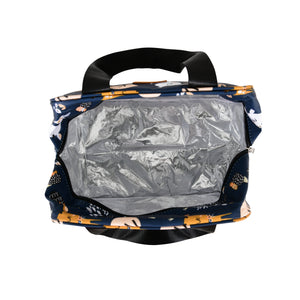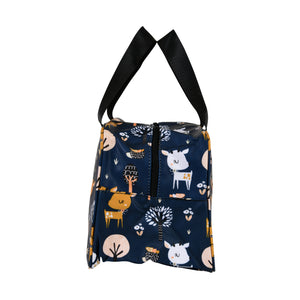 Navy blue base with multicoloured deer & tree print Lunch Bag
