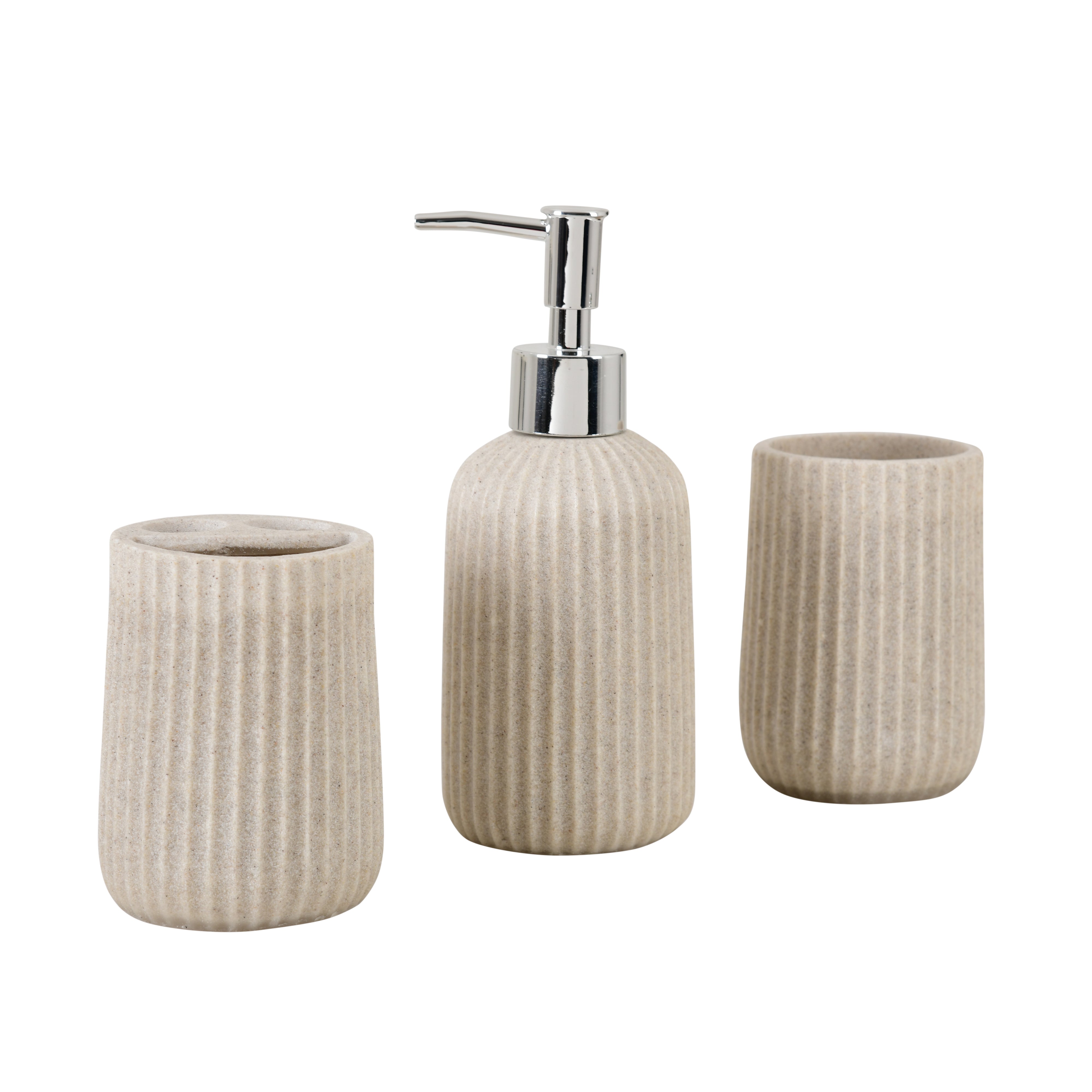 Luxury Beige Bathroom Organizer Set – 3-Piece Dispenser and Cup Collection