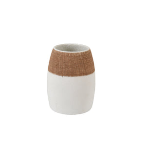 • Features a stylish two-tone finish combining a smooth stone texture with a ribbed brown woven-like detail