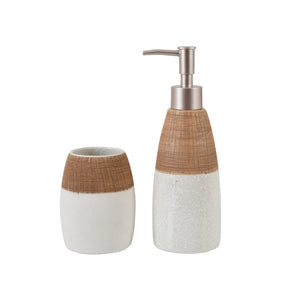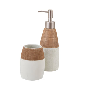 This 2-piece bathroom accessory set is crafted to bring a blend of natural charm, elegance, and functionality to your daily routine. It includes a liquid soap dispenser and a toothbrush holder, offering a perfect balance of utility and design. Featuring a warm beige stone base with a textured brown accent, this set adds an earthy sophistication that complements both modern and rustic décor themes.