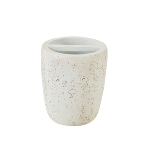 This 3-piece bathroom accessory set combines simplicity, elegance, and everyday practicality. It includes a liquid soap dispenser, a toothbrush holder, and a multipurpose tumbler—offering a complete solution for organizing bathroom essentials. The smooth cream stone finish with subtle natural speckles and a polished chrome pump adds a refined yet earthy charm that suits both modern and rustic bathroom décors.