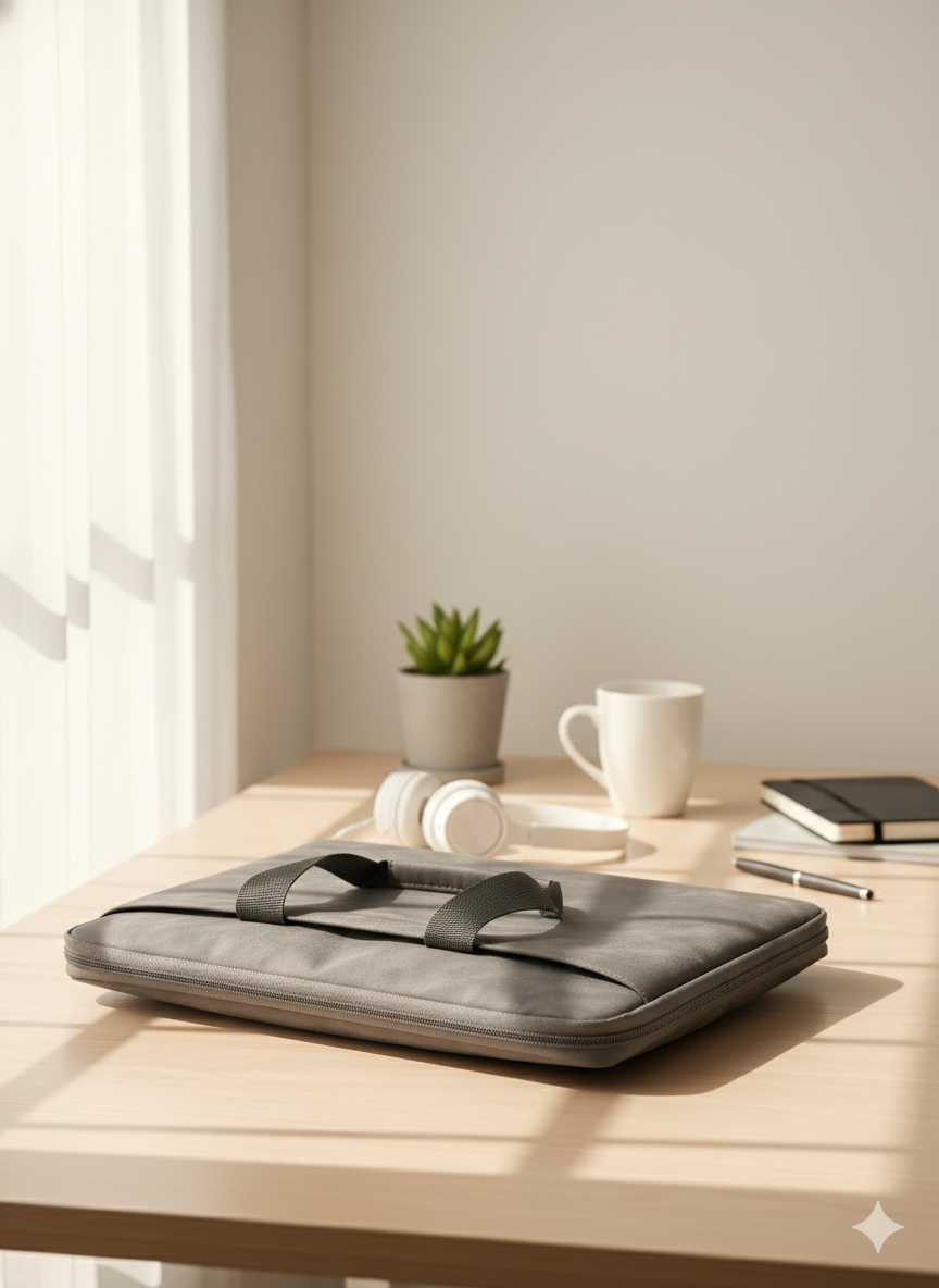 The soft padded interior helps safeguard your laptop from scratches, pressure, and everyday handling impacts. The front quick-access pocket is ideal for storing essentials such as chargers, cables, ID cards, notebooks, pens, and mobile accessories. The double zipper closure ensures smooth and secure opening every time.