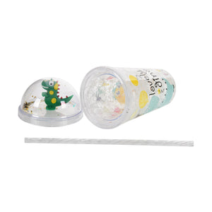 Make hydration fun with the Lovely Dino Kids Cup Bottle. Featuring an adorable dinosaur print and a dome lid topped with a 3D dino figure, this bottle instantly delights kids. The crystal-clear body with glitter accents adds a playful touch, making it perfect for school, playtime, or outings.