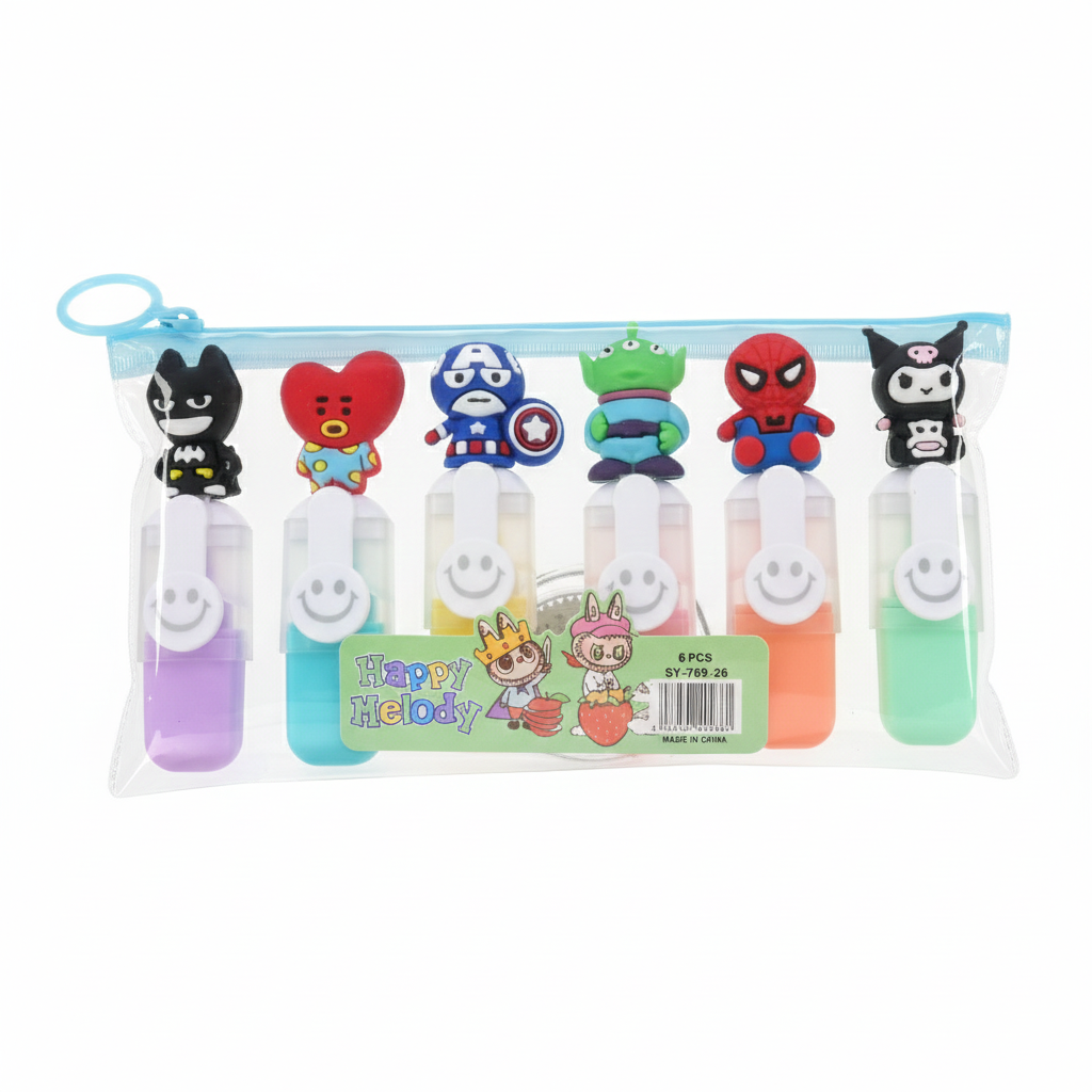 Cute Character Highlighter Set – 6 Pcs Pastel Highlighters for Kids, School & Journaling