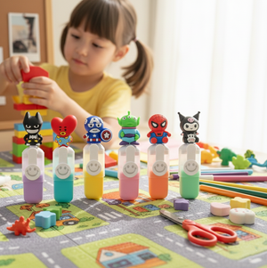 This adorable 6-Piece Cute Character Highlighter Set is perfect for kids who love fun stationery and colourful study time. Each highlighter features a pastel shade along with a cute cartoon topper inspired by playful superhero-style and animated character designs, making studying and note-taking exciting. The smooth chisel tip allows both thin and wide highlighting, gliding neatly on paper without smudging. These pastel colours are gentle on the eyes, making them ideal for school notes, planners, diaries, creative doodling, and craft work. Compact, lightweight, and kid-friendly, the markers come neatly packed in a transparent pouch for easy storage and carrying. Made with non-toxic, child-safe ink, this highlighter set is a perfect choice for school supplies, birthday return gifts, art kits, and creative desks.