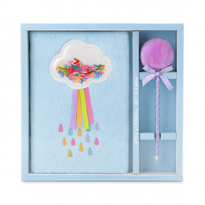 Add magic to writing time with the Cute Rainbow Cloud Plush Diary Set. This adorable set comes with a soft, furry diary in sky blue and a matching fluffy pen, making journaling, doodling, and note-keeping extra fun. The diary features a playful cloud design filled with colorful sprinkles, rainbow ribbons, and embroidered raindrops – a cheerful touch kids will love. Perfect as a gift or a personal stationery treasure!