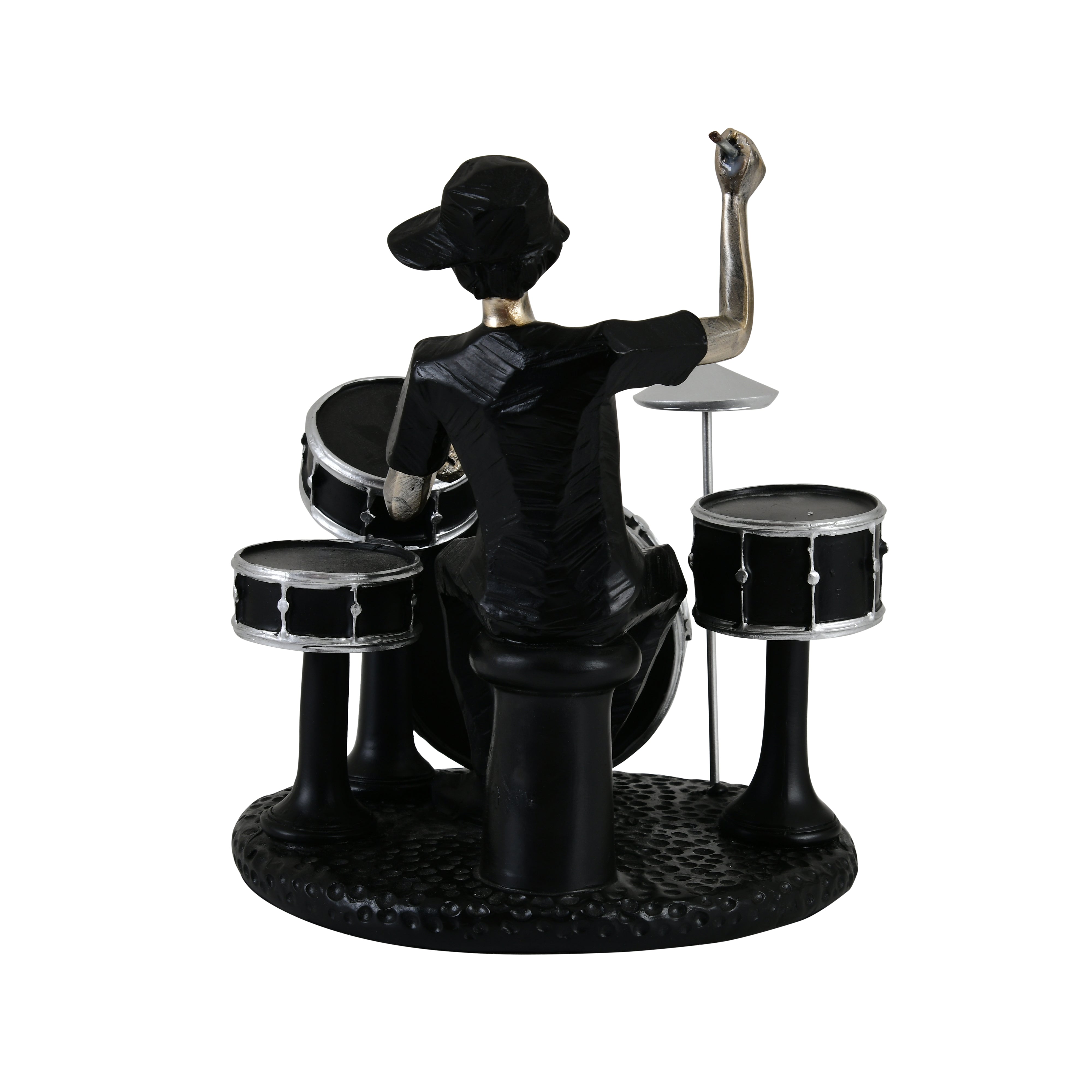 With its bold design, intricate drum details, and contrasting finishes, this figurine makes a striking centerpiece for shelves, console tables, or creative spaces. Display it individually or alongside other figurines from the collection (singer, guitarist, keyboardist) to create a complete musical ensemble for your décor.
