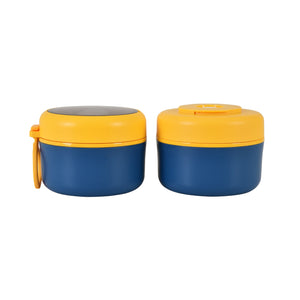 Double Compartment Stainless Steel Twist & Go Lunch Box (Blue with Yellow)