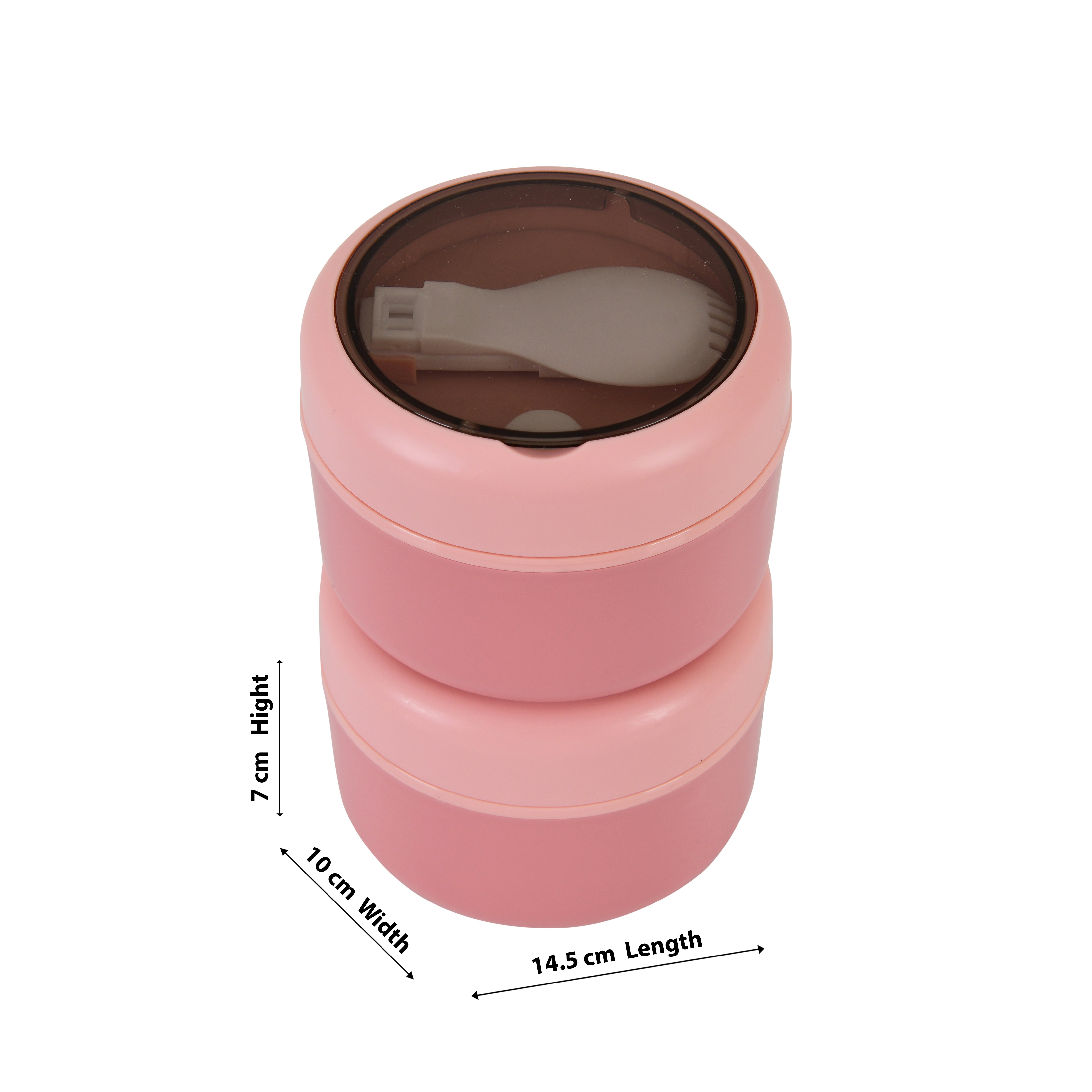 Double Compartment Stainless Steel Twist & Go Lunch Box (Pink with Grey)