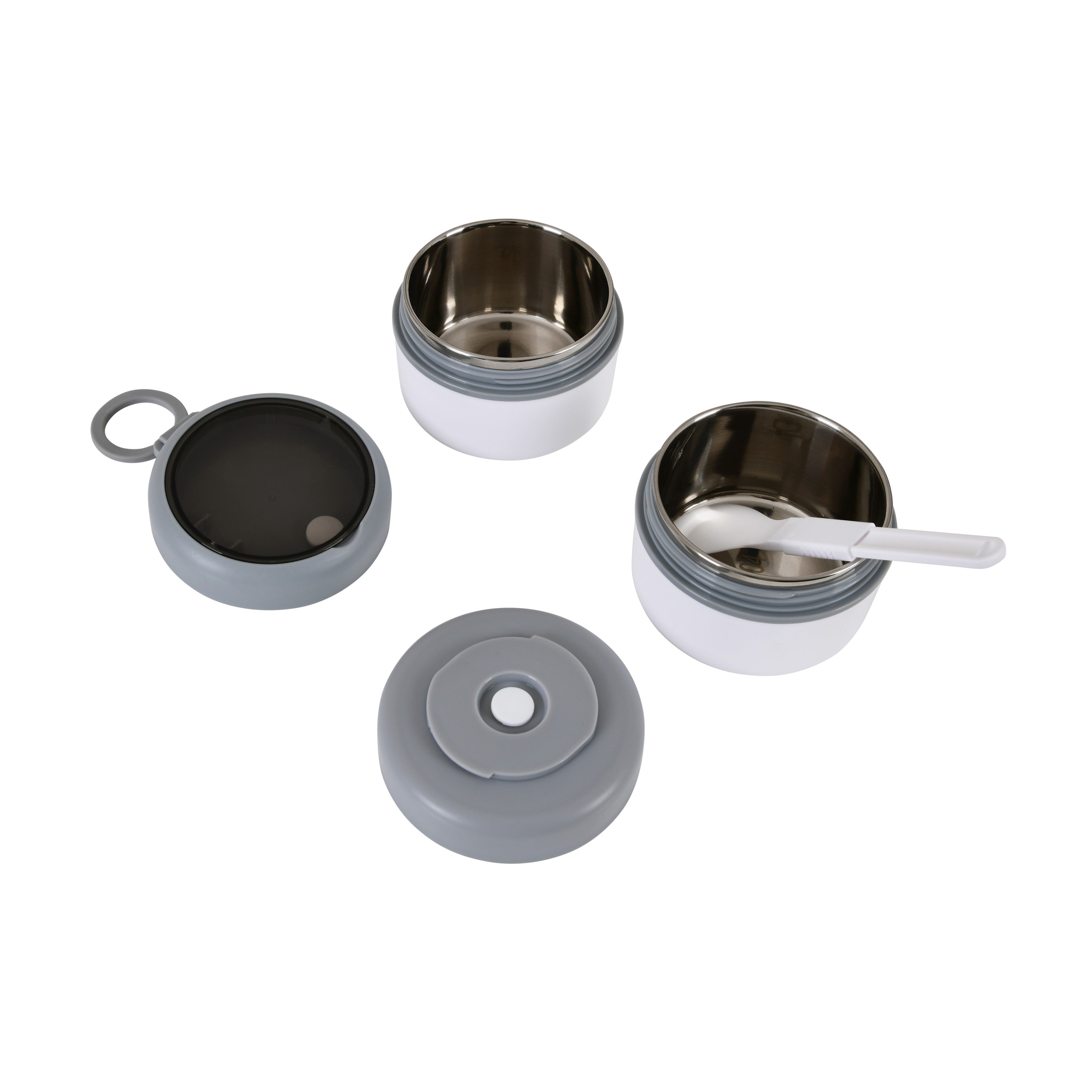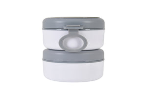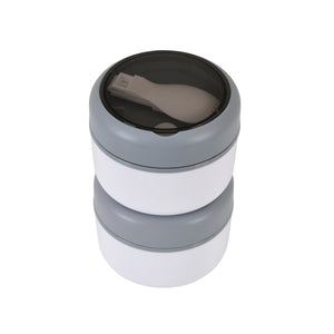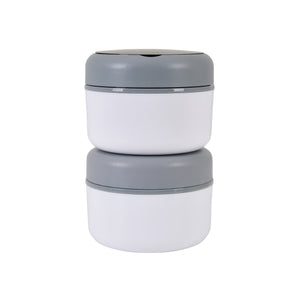 Double Compartment Stainless Steel Twist & Go Lunch Box (White with Grey)
