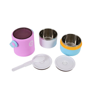 Dual Compartment Stainless Steel Lunch Box (Pink-Blue)