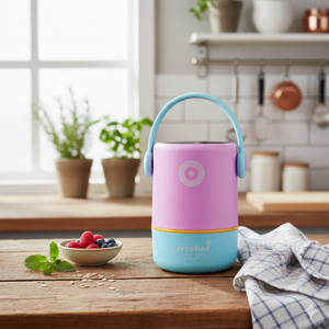 Brighten up mealtimes with this Dual-Compartment Lunch Box – the perfect mix of style, functionality, and everyday convenience. Featuring a pastel pink and blue body with a cheerful yellow accent, it’s designed to add a playful yet elegant touch to your daily routine. The sturdy pastel blue handle makes it easy to carry, while the compact yet spacious build ensures you can pack a wholesome meal on the go.