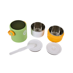 Dual Compartment Stainless Steel Lunch Box (Yellow - Green)