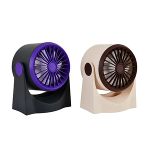Premium F7 Button-Control USB Rechargeable Mini Table/Wall Fan – Charcoal Grey with Purple Ring (3-Speed, 16×13×8.5 cm, 350 g)