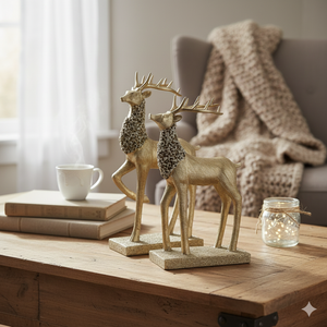 The Elegant Deer Figurines provide a premium décor solution with symbolic significance. Their durable construction and hand-textured detailing make them long-lasting statement pieces. They offer versatile styling options, whether displayed as a coordinated pair or individually, and serve as meaningful gifts for festive, personal, or corporate occasions.
