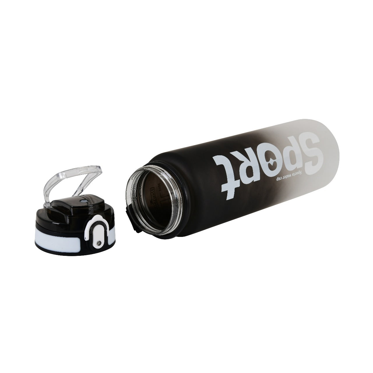 This vibrant fitness water bottle is your ultimate hydration companion that will help you quench your thirst and stay refreshed all day long. Stay hydrated in style with this sleek gradient water bottle. Designed with a modern black-to-grey finish, it features a secure flip-top lid and a convenient carrying strap, making it perfect for daily use, workouts, travel, or outdoor adventures. With clear measurement markings (in both ounces and milliliters), you can easily track your water intake throughout the day.