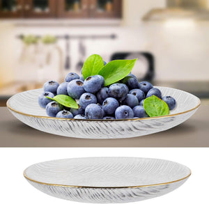These plates are not just beautiful but also highly functional. The textured surface enhances grip while holding, preventing slips. The larger plate is perfect for serving main courses, fruits, or snacks, while the smaller one is ideal for desserts or side dishes. Their transparent design with golden rims blends seamlessly with any kitchenware, making them a timeless addition to your collection.