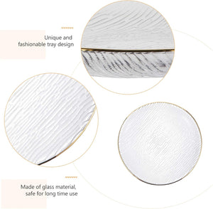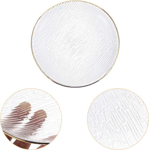 Elevate your dining experience with this set of round textured glass plates. Crafted from high-quality transparent glass, these plates feature a delicate diamond-textured pattern that adds elegance and charm to any table setting. The rims are finely accented with a golden touch, making them ideal for both everyday use and special occasions.