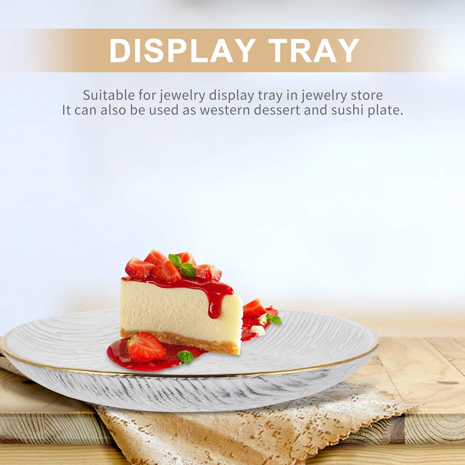 • 1 x Large Round Textured Glass Plate (Golden Rim)