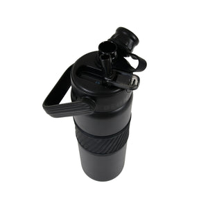 This sleek black water bottle is your ultimate hydration partner, designed to keep you refreshed and energized all day. Its modern, minimalist design features a sturdy flip-top lid and strong carrying handle, making it ideal for gym sessions, outdoor adventures, office, or daily use. With durable construction and an easy-grip design, it ensures convenience, safety, and style wherever you go.