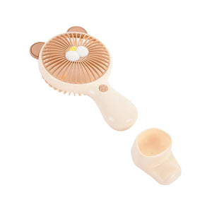 Hand Operated Teddy Mini Fan (Beige and Brown)