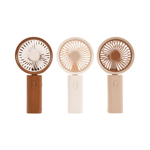 Stay cool anywhere with this compact, quiet, and portable mini fan. Its Coffee Brown ABS body is lightweight yet durable, with a fold-out stand for hands-free desk use and a 3-speed slider for customized airflow. USB rechargeable and complete with a DIY sticker sheet, you can personalize your fan while keeping it ready for travel, work, or home.