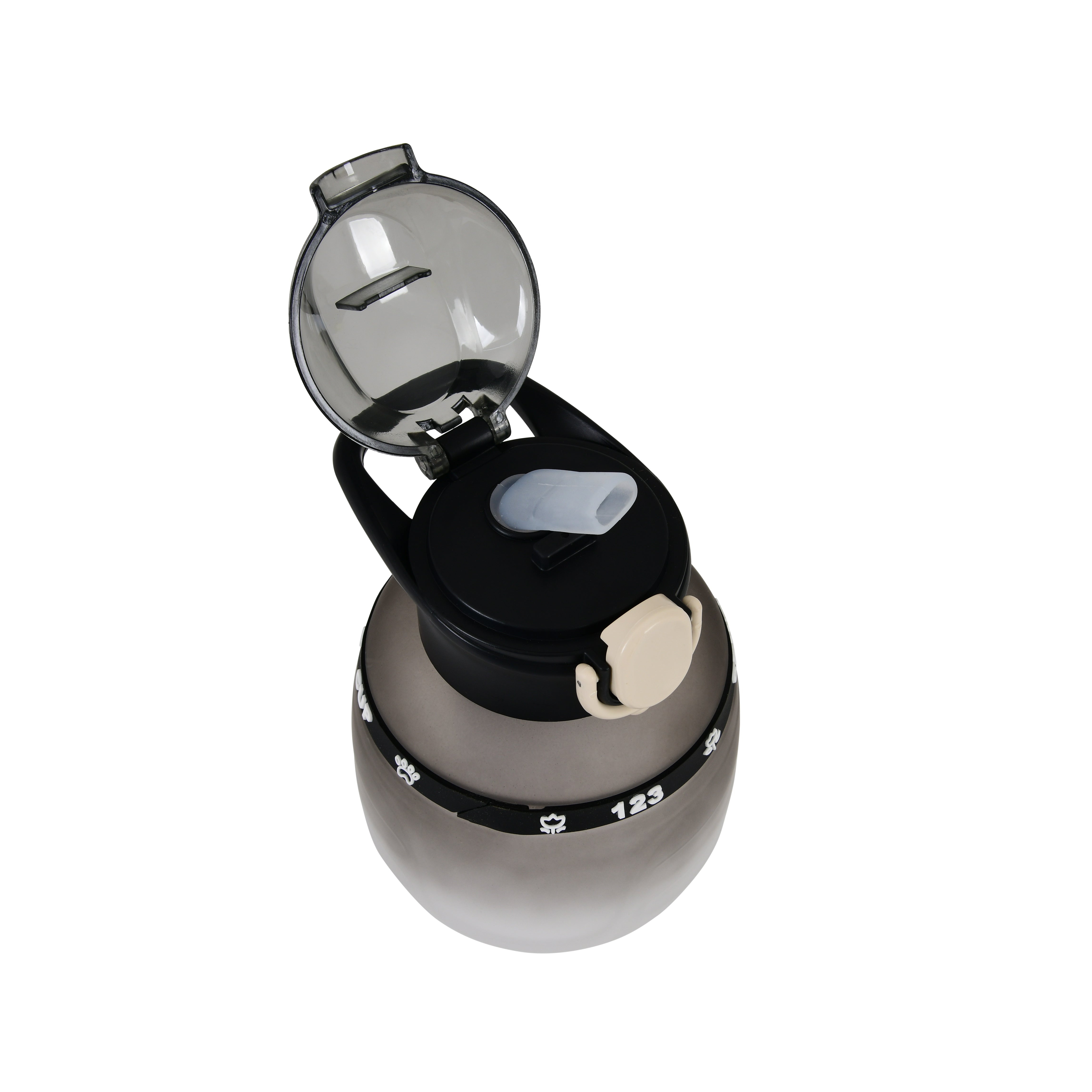 The Kids Bottle with DIY Stickers and Neck Strap is a fun and practical hydration companion for children. Its playful black-white gradient design with black lid lock allows kids to personalize their bottle using the included DIY sticker set, making it uniquely theirs. The sturdy build and secure flip-top lid ensure a leakproof experience, while the detachable neck strap makes it easy to carry anywhere — school, playground, or outdoor adventures.
