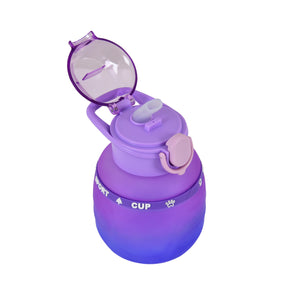 The Kids Bottle with DIY Stickers and Neck Strap is a fun and practical hydration companion for children. Its playful purple-blue gradient design with pink lid lock lets kids personalize their bottle using the included DIY sticker set, making it uniquely theirs. The sturdy construction and secure flip-top lid ensure a leakproof experience, while the detachable neck strap makes it easy to carry anywhere — school, playground, or outdoor adventures.