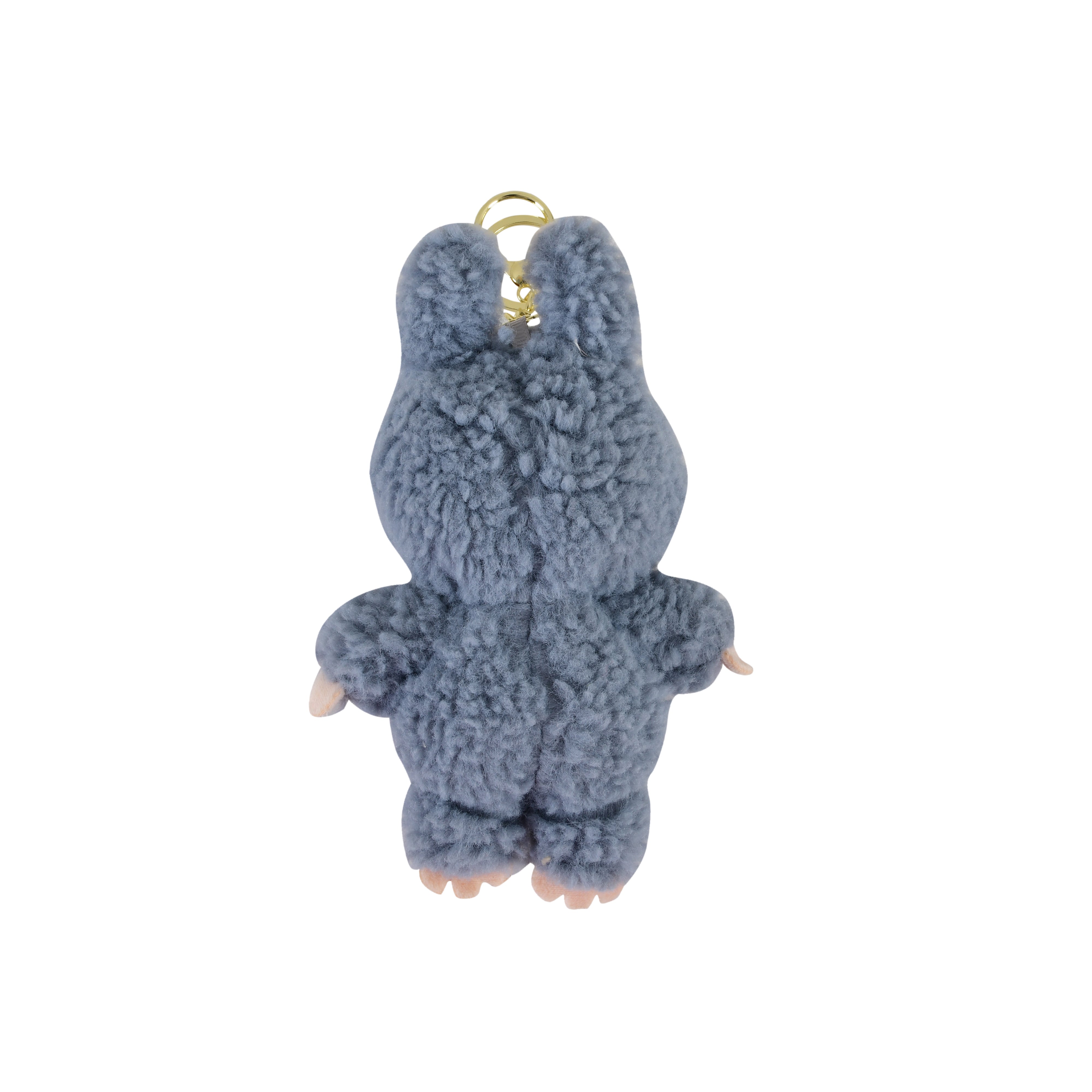 Ultra-soft sherpa plush body, felt/velvet ear and paw details, fully embroidered face (eyes, smile, and teeth), secure internal stuffing, metal alloy key ring and short chain (gold finish)